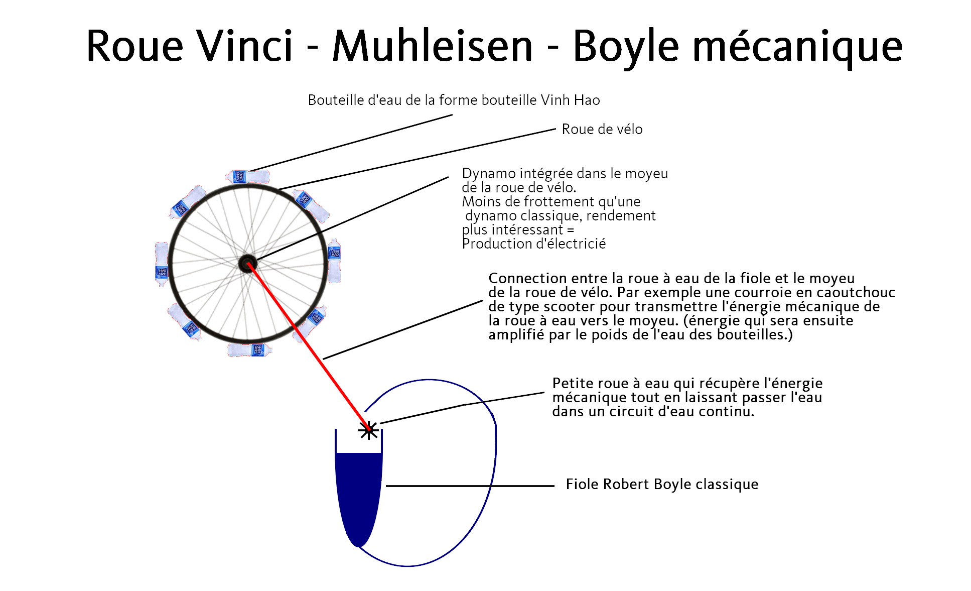 La roue Vinci - Muhleisen - Boyle, la roue VMB permet de produire de l'électricité en continue en couplant deux inventions plus anciennes.